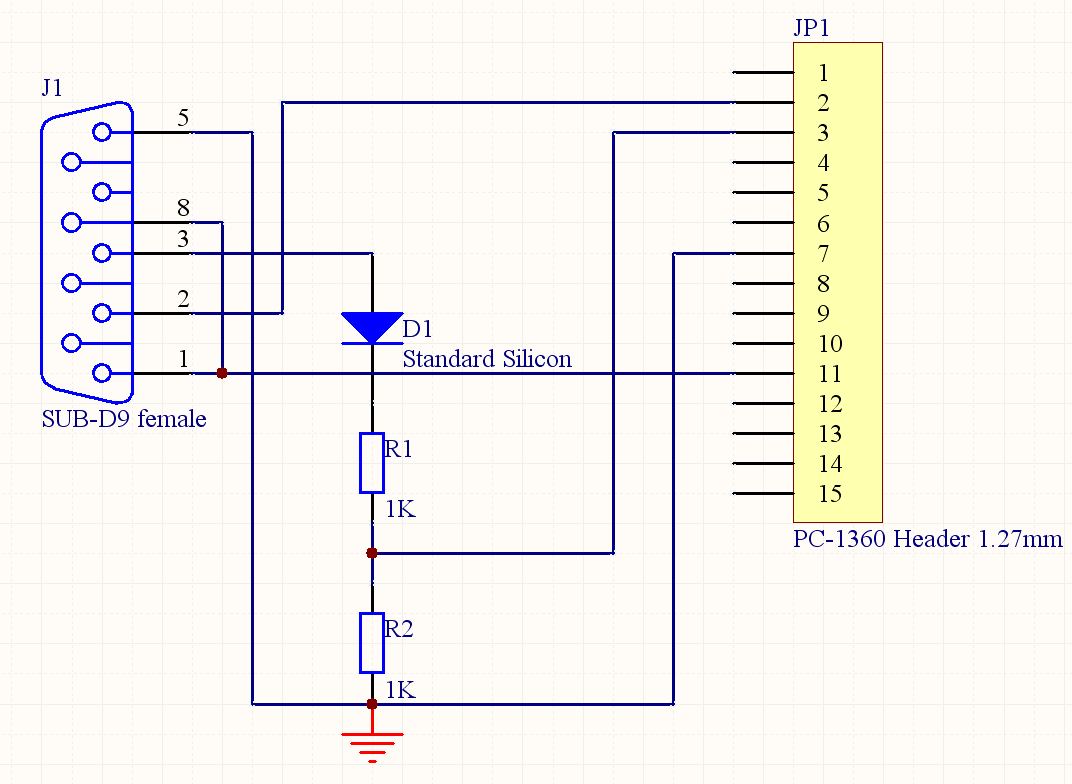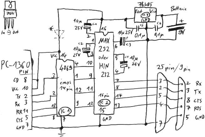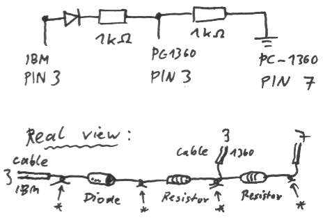 Benötigt wird ein serielles Kabel, entweder simple oder hochwertig. Der Treiber benutzt die gleichen Leitungen wie der eingebaute mit 1200 Baud.